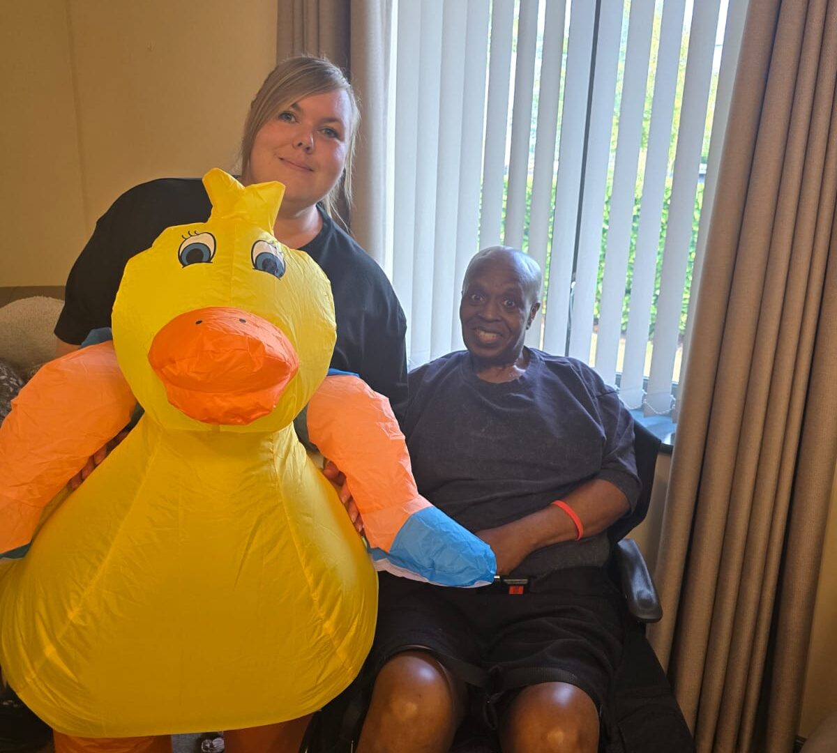 Small steps made a big difference. Devon began lifting his legs, dancing in bed and joining in cooking and vacuuming, with staff making adaptations so he could still take part. His speech improved too, from using only a few words, Devon is now chatting easily with staff and visitors again.